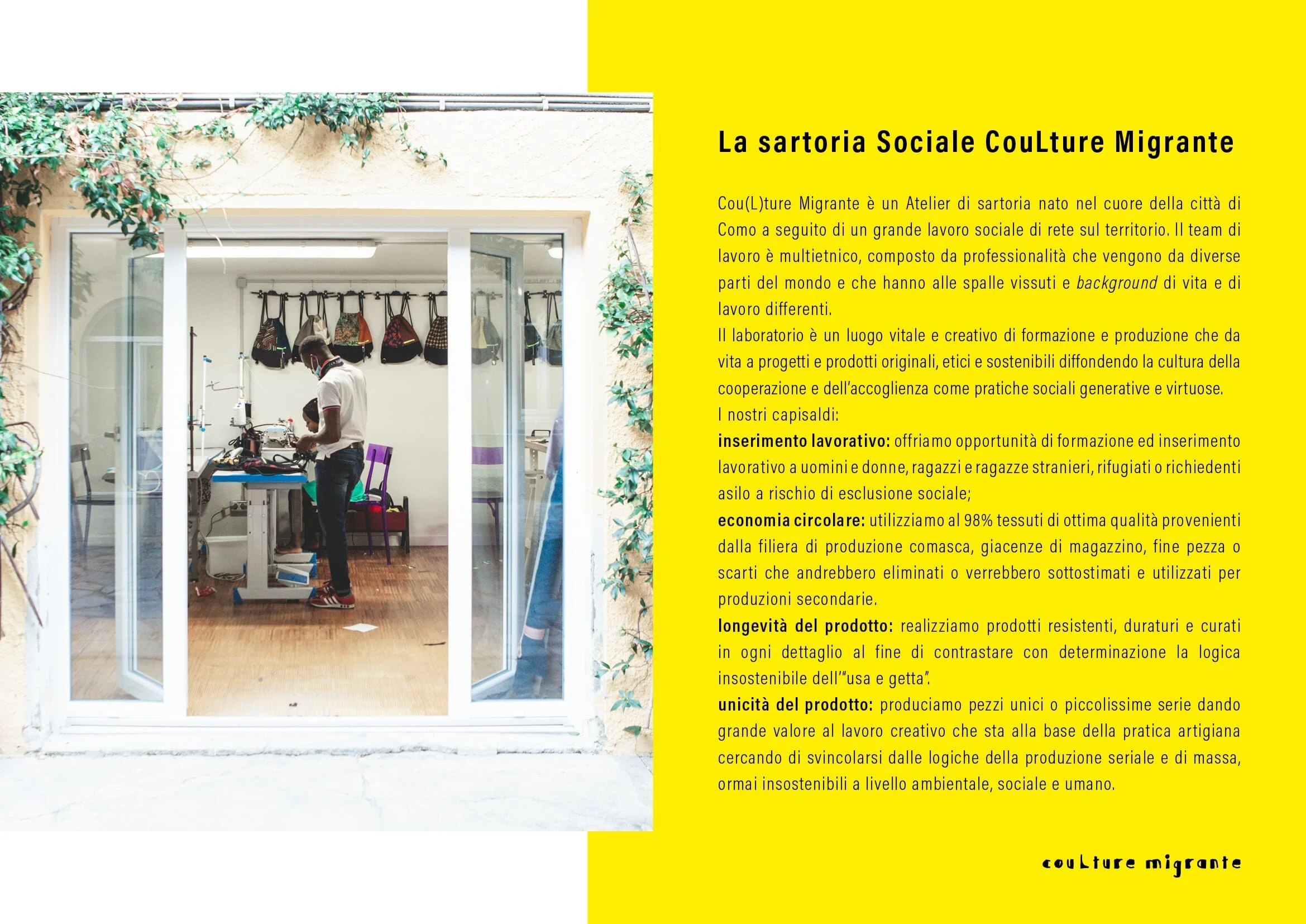 Acquistando un prodotto CouLture Migrante sostieni la pratica artigiana e l’arte creativa che porta con sé. è un modo per premiare il talento, la passione e la cura, gratificando un artista che crea anche per superare le logiche del prodotto “usa e getta”.